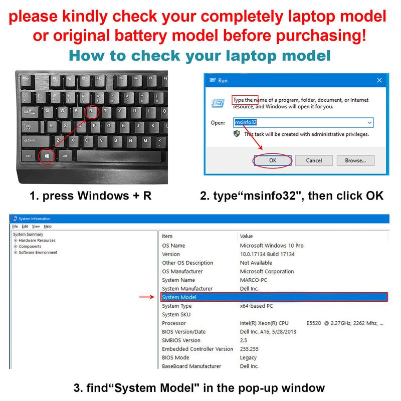 Tip 1: You have to find your specific laptop model before ordering a correct battery. How to check your laptop model?